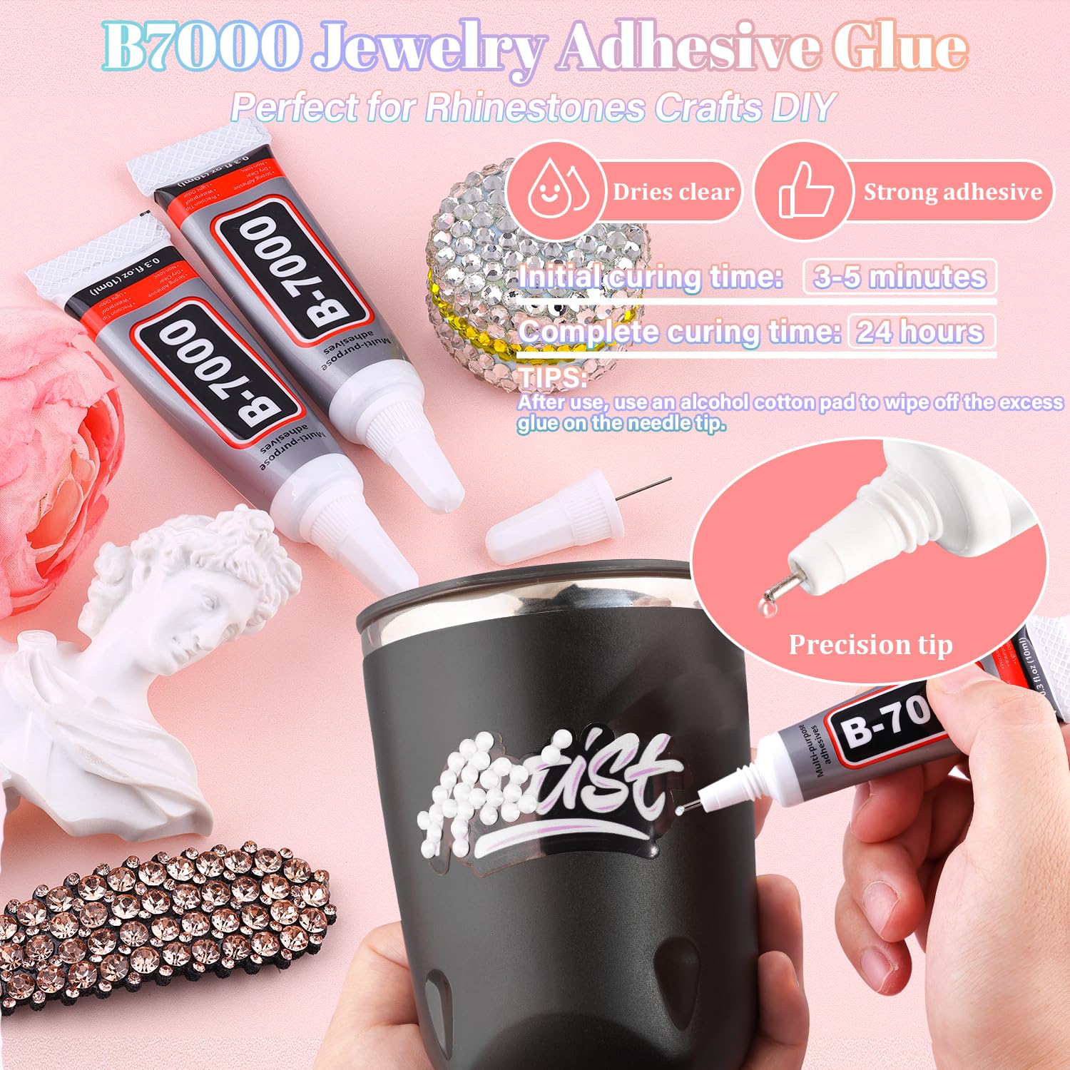 - STRONG B7000 GLUE FOR GEMS β B7000 glue offers strong, long-lasting adhesion and dries clear, making it perfect for securing gemstones and other embellishments. The precision needle tip allows for controlled, mess-free application. For best results, clean the needle with an alcohol wipe after each use to prevent clogging and ensure smooth flow every time.