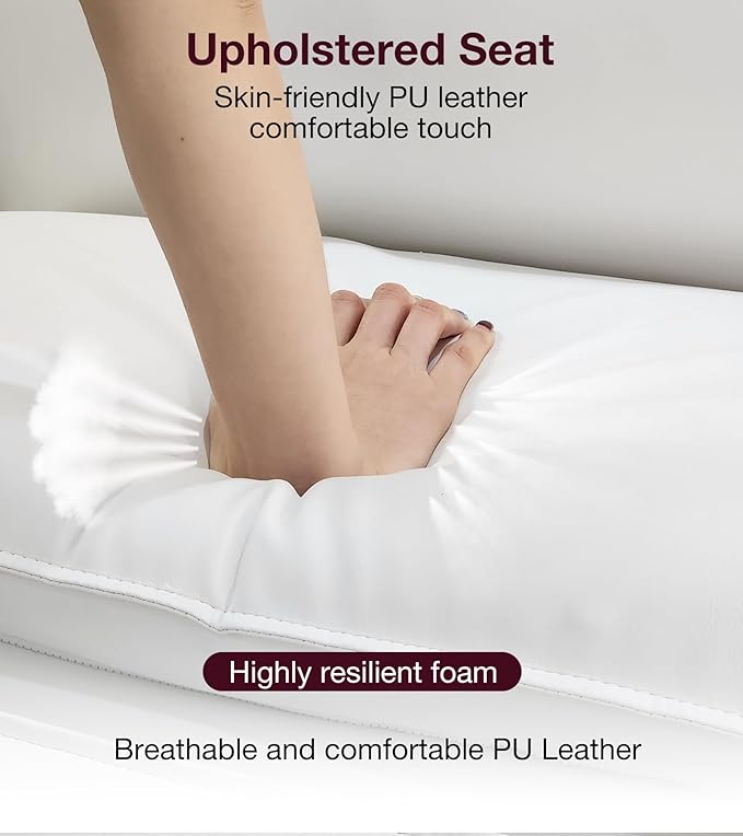 - Extra Soft Cushioning: Upgraded with an additional foam padding layer beneath the seat surface to offer exceptional comfort and support. Clients will enjoy a plush, relaxed experience even during longer sessions. The smooth PU leather cover is skin-friendly and easy to clean