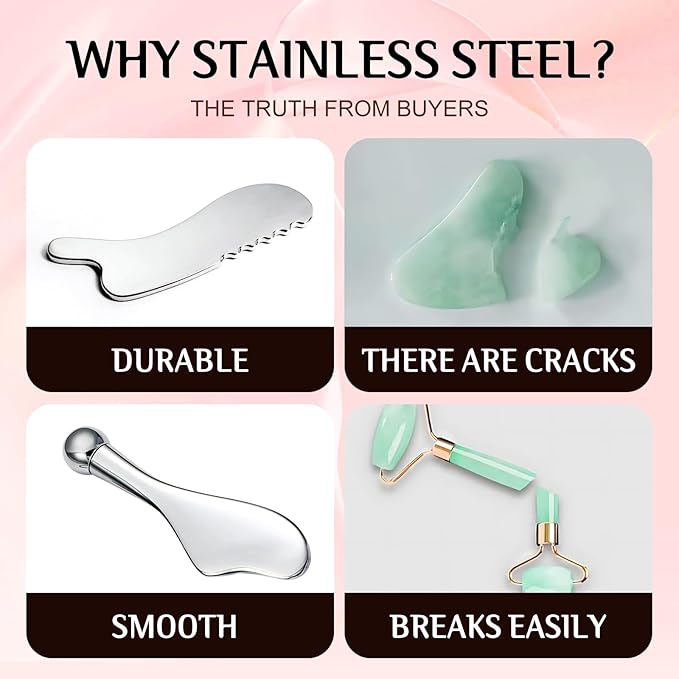 - 【Sturdy And Durable】This gua sha tool for face and stainless steel face roller are made entirely of metal, offering a cooling, refreshing feel that elevates your skincare routine. Ideal for those who love high-quality face massager tools