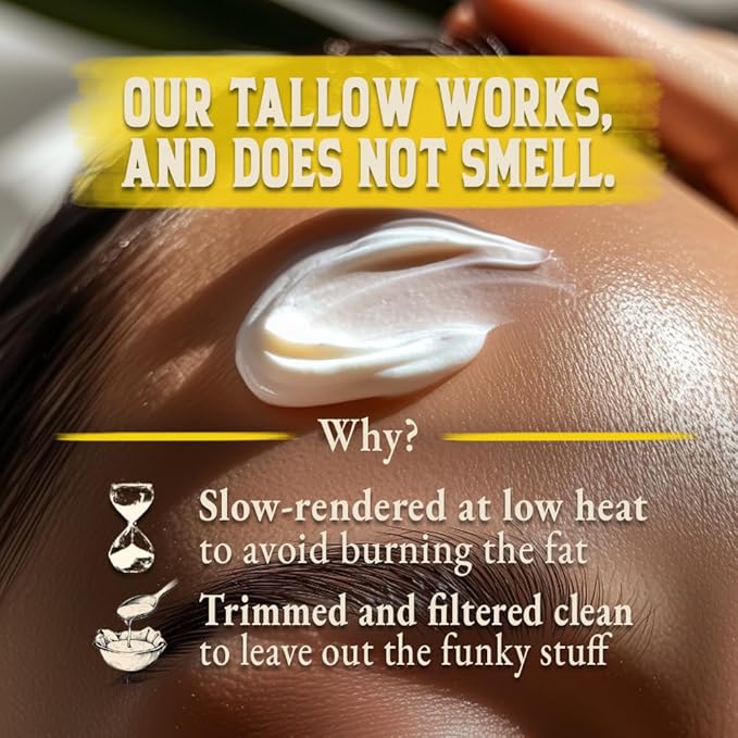 - π¦ IRRESISTIBLY SATISFYING WHIPPED TEXTURE: Immerse yourself in the sheer luxury of our more than just a tallow face moisturizer β a versatile honey tallow balm for face, body lotion, lip balm, and full-body care for all skin types. Whipped to an incredibly light and airy texture, it effortlessly melts into your skin, offering a deeply satisfying application experience. Enjoy the indulgence of a high-end cream without β phthalates, parabens, or artificial additivesβjust pure, natural hydration