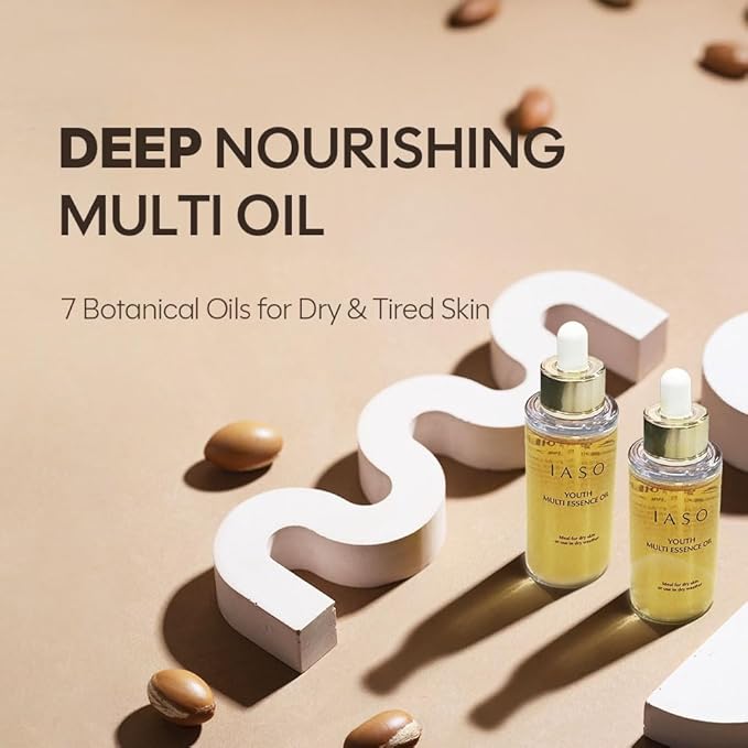 IASO Youth Multi Essence Oil | Korean Face & Body Oil with Retinol, Jojoba, Rosehip & Squalane | Lightweight Hydration & Radiance Boost for All Skin Types, 1 oz