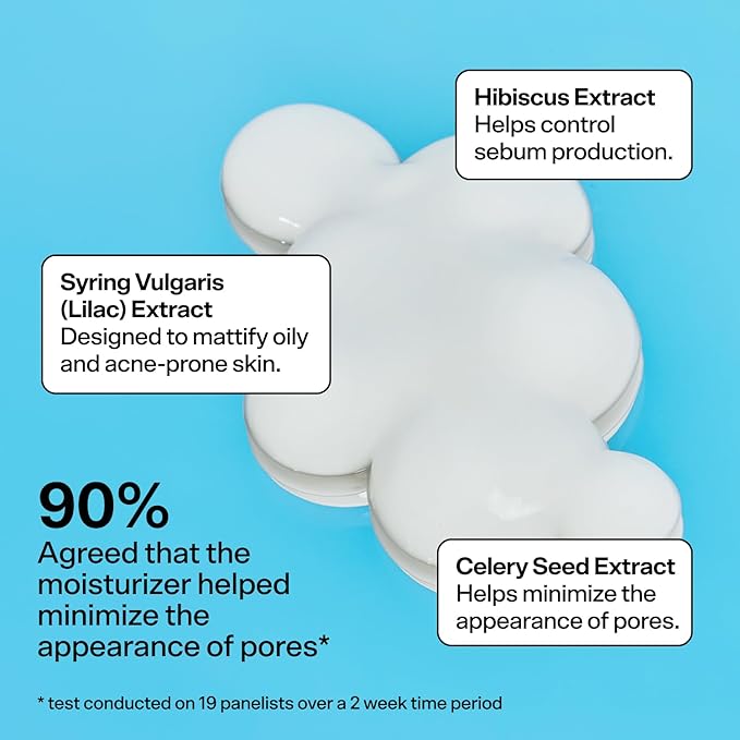 - Hydration Without The Shine - Cloud Surf is enriched with hibiscus extract to help control sebum production while lilac extract mattifies and equalizes the tone of acne-prone skin. Celery seed extract makes this face cream a double-acting, gel based pore minimizer, keeping your skin smooth and prepped for makeup application!