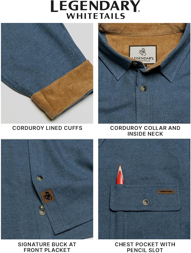 Legendary Whitetails Men's Flannel Shirt Long Sleeve Button Down 100% Cotton