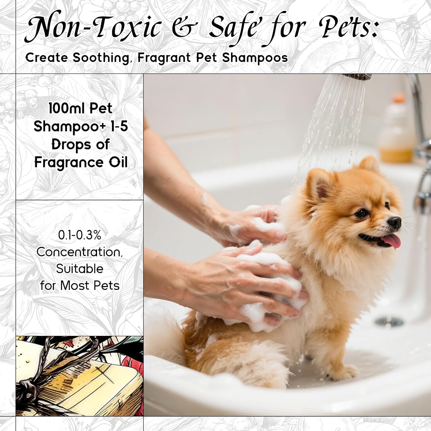 - Pet-Safe Formula: The ingredients are mild and non-irritating, and can be diluted according to the instructions for various DIY pet products such as pet shampoo, deodorant spray, and paw balm