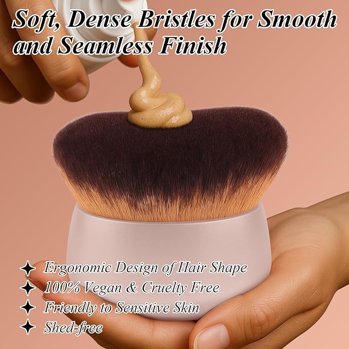 - DENSE, SILKY-SOFT BRISTLES – FOR FLAWLESS, STREAK-FREE RESULTS Packed with 50,000+ ultra-soft, high-density synthetic bristles, this brush blends like a dream—no tugging, no irritation. It spreads product evenly without over-absorbing, saving you tanner and makeup. Whether it’s thick foundation or shimmer lotion, the bristles glide on smoothly for an airbrushed finish. Gentle even on sensitive skin—like a cloud in every stroke.