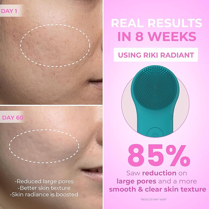 - Dual-Sided Design for 2-in-1 Skincare - Get the best of both worlds with the RIKI LOVES Silicone Facial scrubber. One side features fine, soft silicone bristles (in two sizes) for deep cleansing and gentle exfoliation. The other side delivers Heating, Cold Compress, and LED light therapy for a soothing spa experience—all in one stylish device.