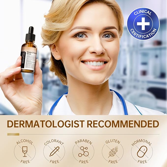 Vitamin C Face Serum with Vitamin C, Hyaluronic Acid, Vitamin E, Serum for Dullness, Balanced Complexion, Eye Area, Fine Lines & Wrinkles, 30ml/1.01oz