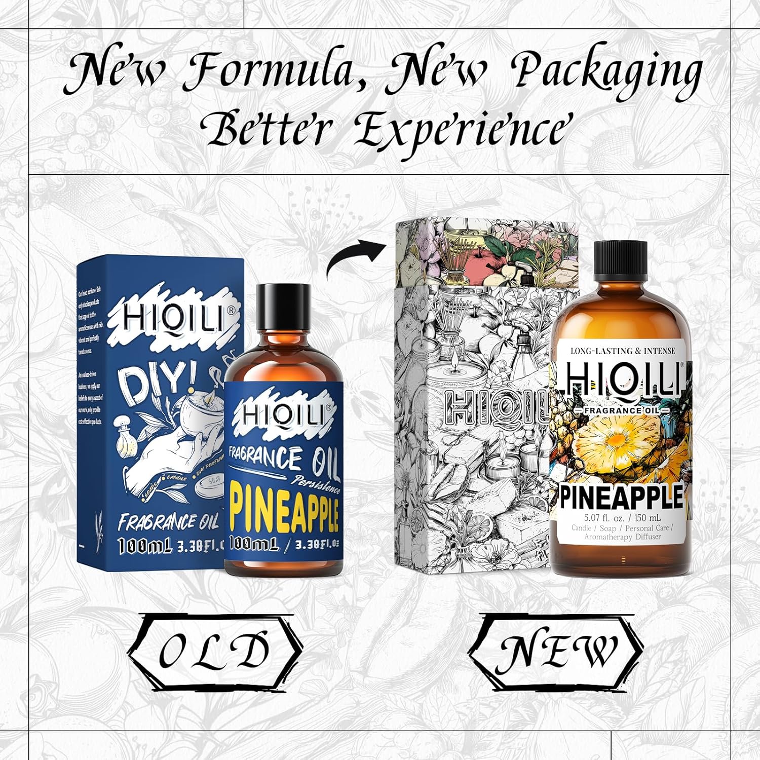 HIQILI Pineapple Fragrance Oil for Diffuser, Soaps, Bath Bombs, Candles Making, Bright Scents for Home, Car & Office - 5.07 Fl Oz