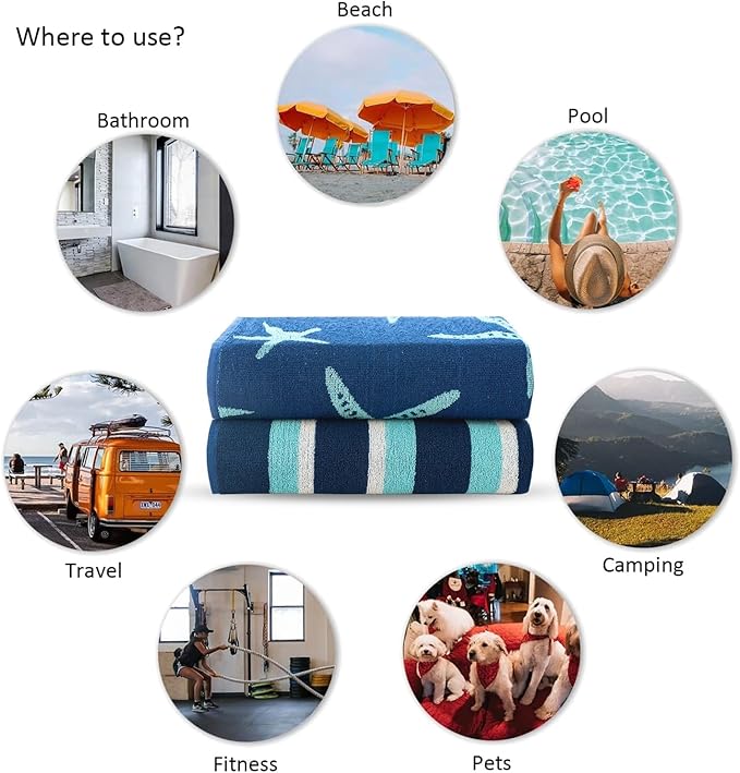 - Beach Towel for Luxurious Comfort towel is crafted from 100% cotton, ensuring a remarkably soft and comfortable towel that's perfect for your beach trip essentials