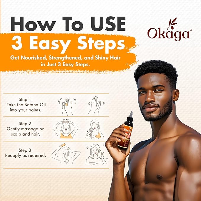 - Restores Shine & Softness: Okaga Batana Oil deeply conditions dry, brittle hair, effectively restoring softness, shine, and manageability. Its nourishing properties help reduce breakage and smooth frizz, leaving hair silky, radiant, and healthy-looking. Suitable for all hair types, this natural blend provides daily hydration without weighing hair down or leaving a greasy residue.