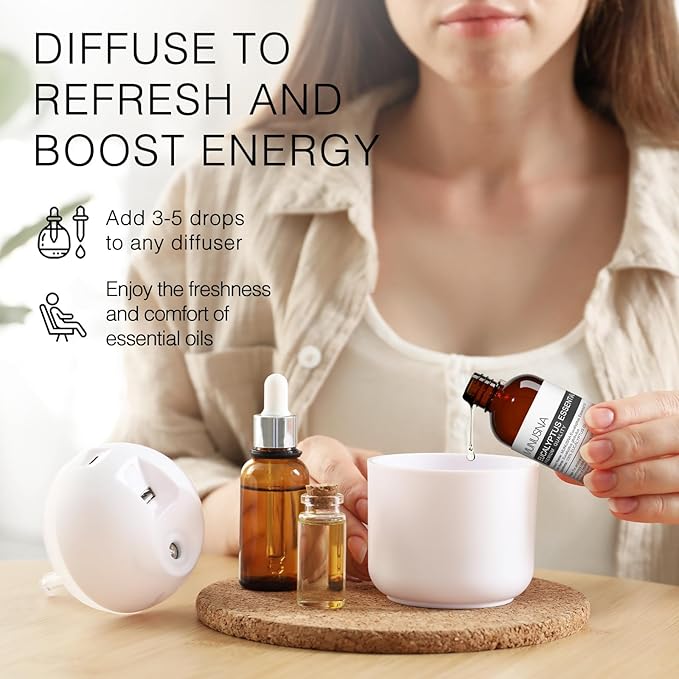 - Relaxation & Refreshing: The unique aroma of eucalyptus body massage oil stimulates the brain, enhances focus and concentration, calms the mind, and reduces anxiety, making it suitable for work or study. Simply add 6-8 drops of essential oil to a diffuser, aromatherapy stove, or humidifier to create a vibrant and fresh aromatherapy atmosphere in your workspace.
