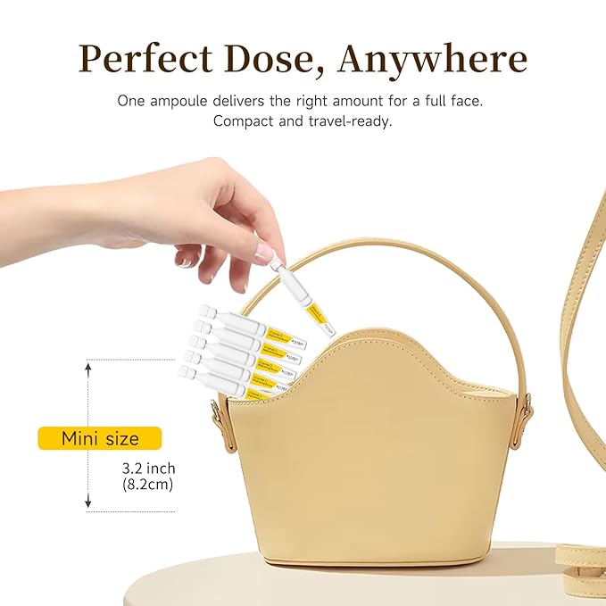 - Individually Packaged for Freshness & Convenience - It comes with 30 single-use ampoules of vitamin c brightening serum,each 1.2ml.These ampoules are convenient,keep the serum fresh,and ideal for travel,holidays,or on-the-go use,providing you a nice skincare wherever you are.