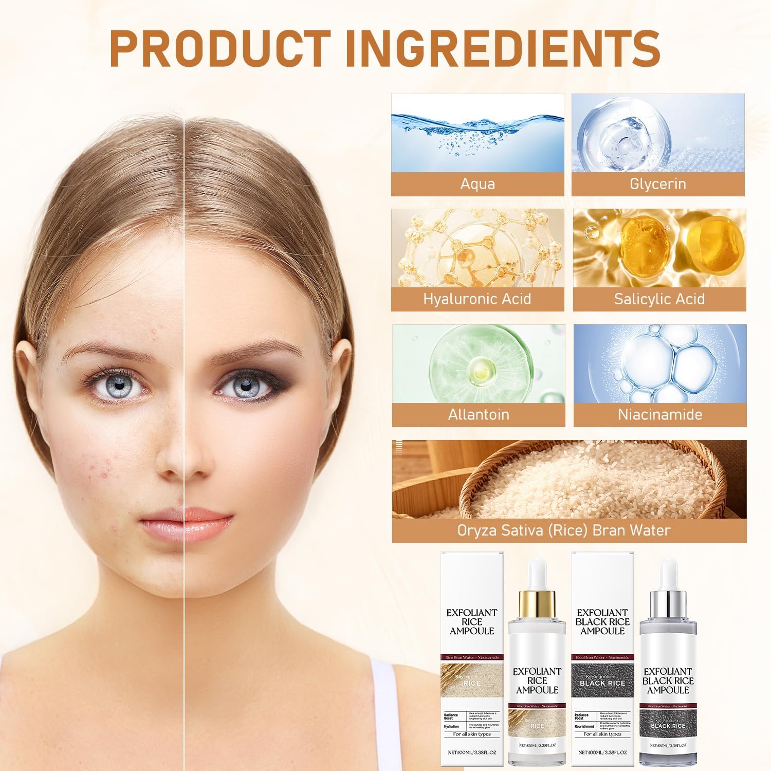 - DUAL FORMULATION: Features both black and white rice exfoliating solutions, each 100ml, designed to provide comprehensive skin care benefits