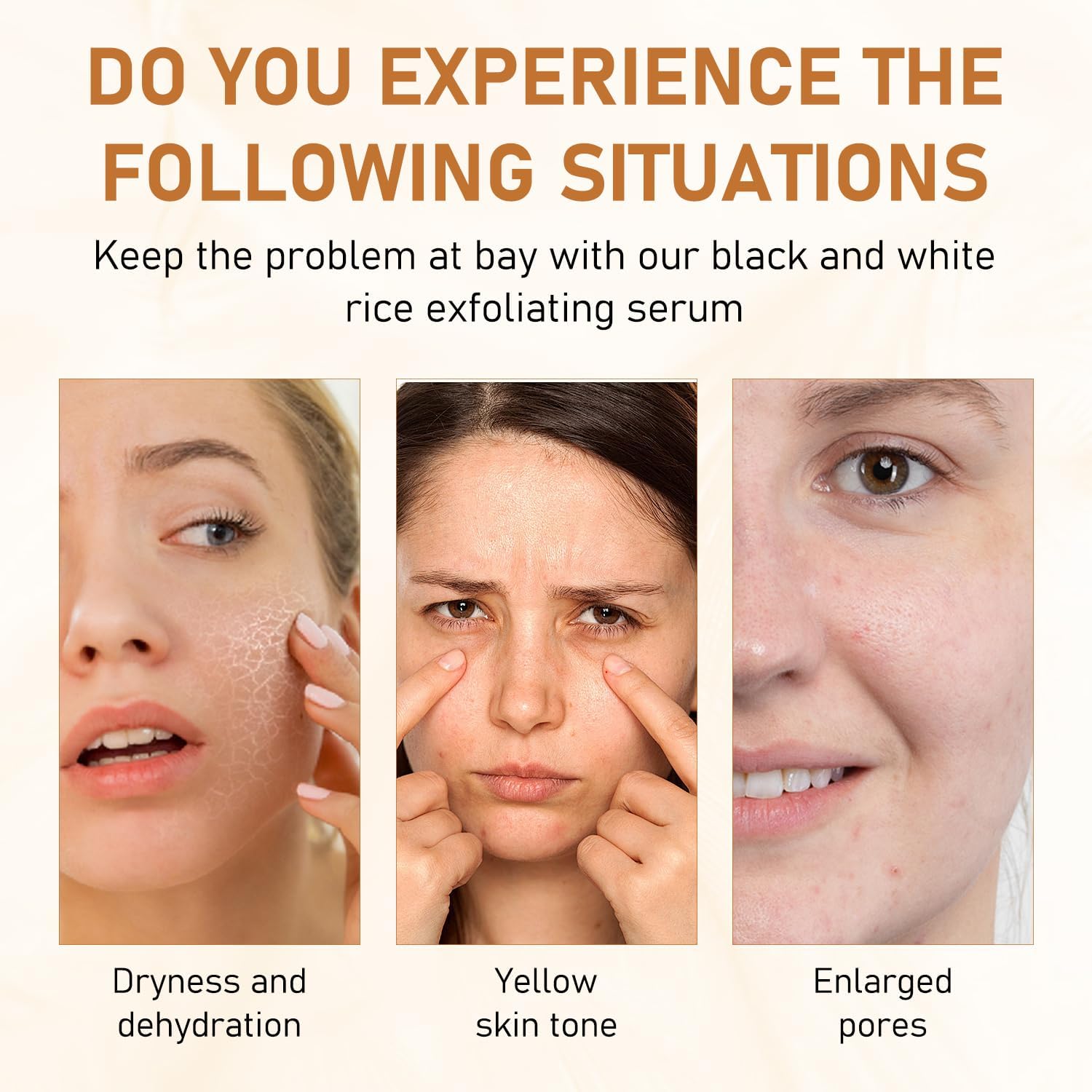- DEEP EXFOLIATION: Black rice formula helps remove dead skin cells and impurities while white rice solution brightens and evens skin tone