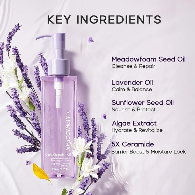 - Moisturizing & Soothing——Infused with a blend of natural botanical oils, it cleanses while nourishing your skin. MEADOWFOAM SEED OIL gently breaks down makeup without tugging, reducing irritation during removal. Its powerful antioxidants help reinforce the skin barrier and minimize sensitivity. LAVENDER OIL delivers a calming aroma, transforming your routine into a soothing sensory ritual that pampers both skin and spirit.