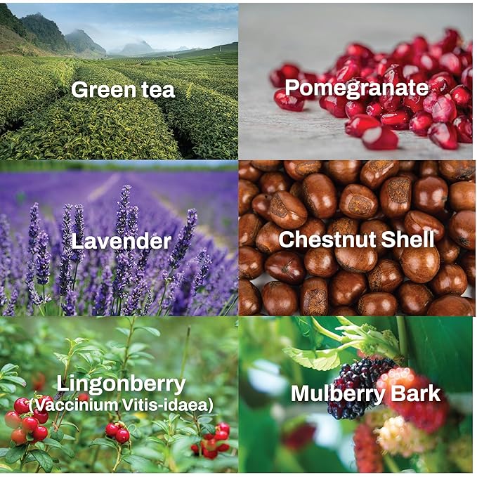 - Green Tea & Chestnut Shell Botanical Complex: Purifies pores, tightens skin and supports sebum balance