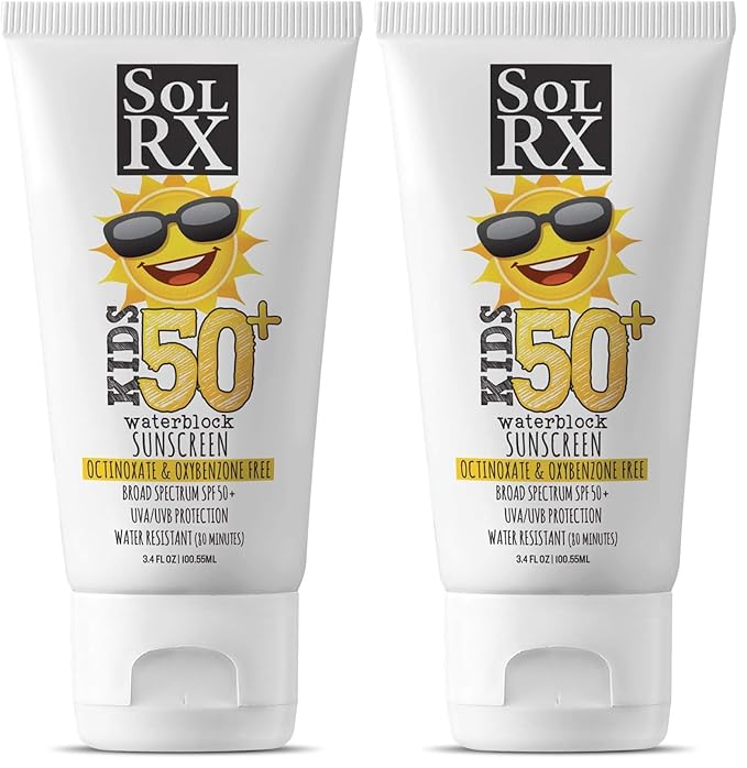 SolRX KID's SPORT Sunscreen SPF 50+ Oxybenzone Free Sunscreen, Reef Safe Sunscreen for Face and Body, Won't Run Into Eyes (Pack of 2)