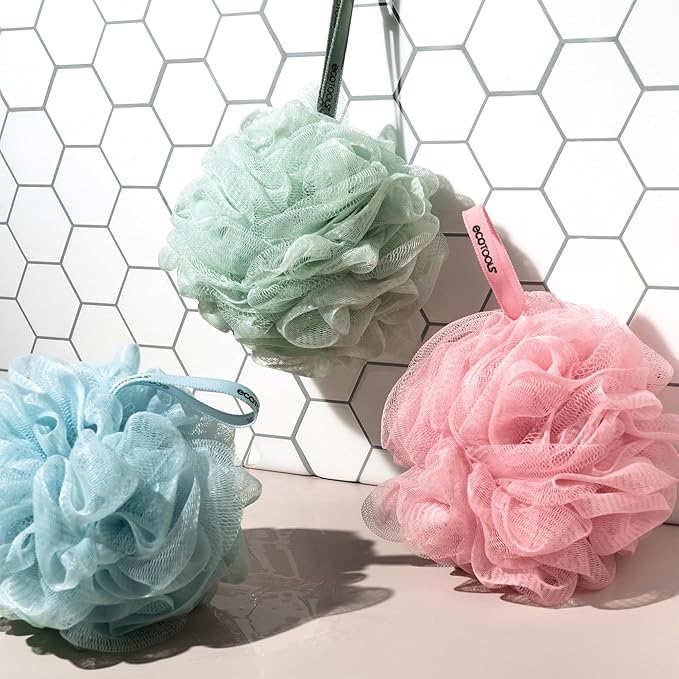 - BATH & SHOWER POUF: The Delicate EcoPouf features recycled nylon netting, ideal for sensitive skin. Create a rich lather with your favorite body wash to cleanse and sweep away dead skin.